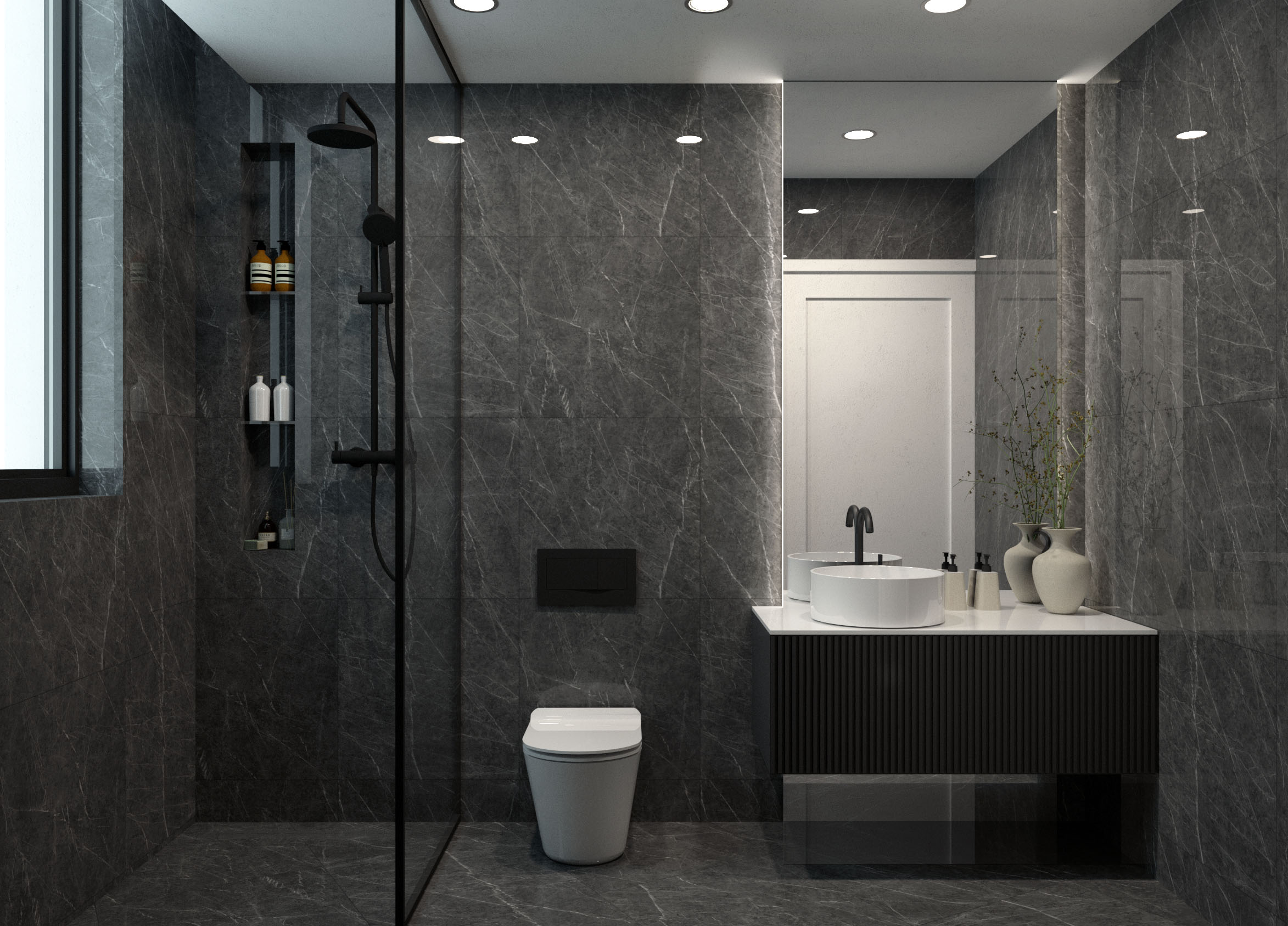 Concealed air conditioning systems are present in each living room, dining room, and kitchen, which adds aesthetic value to each apartment while improving quality of life. Each apartment is linked to solar panels to facilitate water heating, while the photovoltaic panels power the top floor apartments. Each apartment comes with dedicated storage rooms and parking spaces.