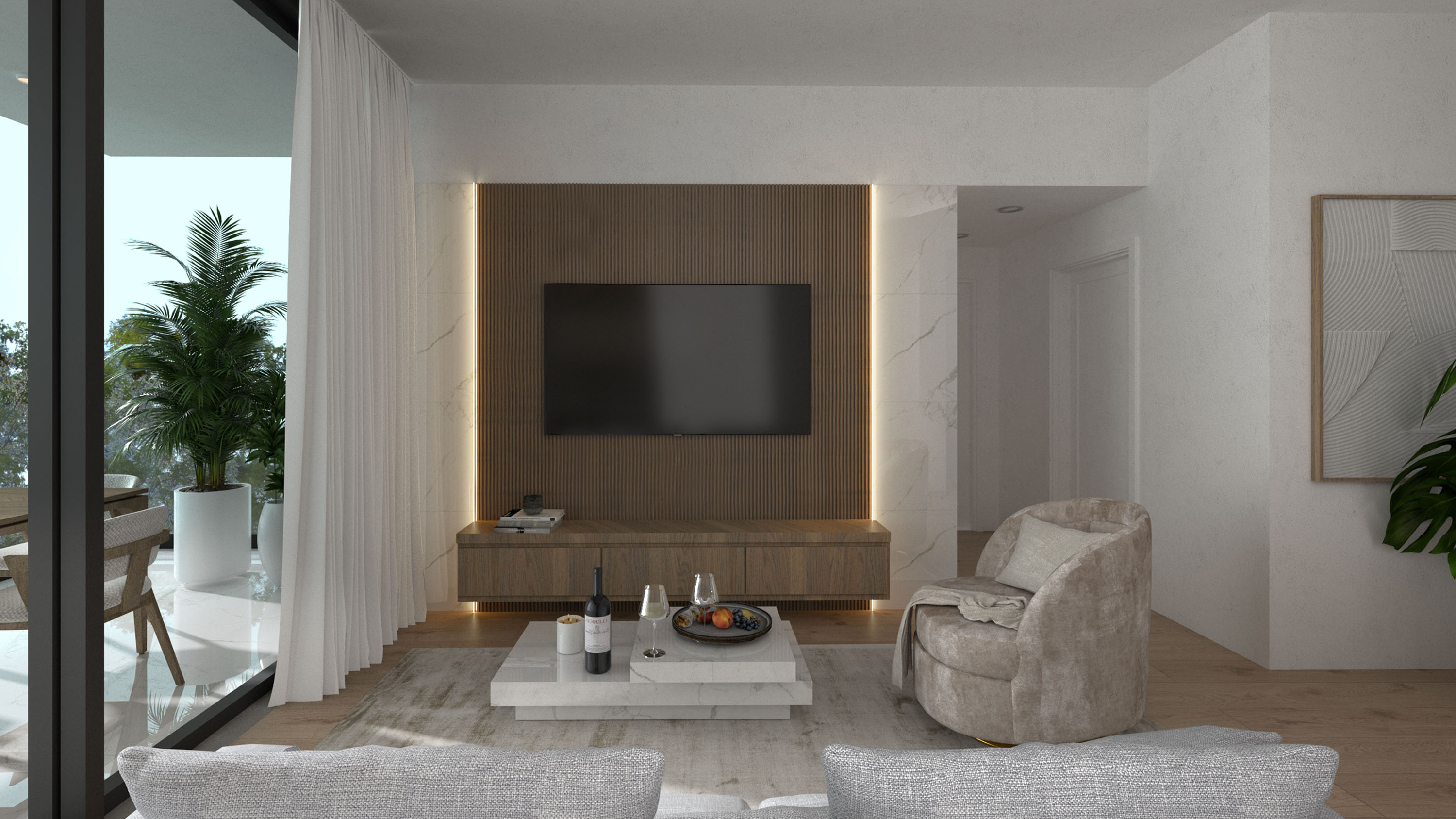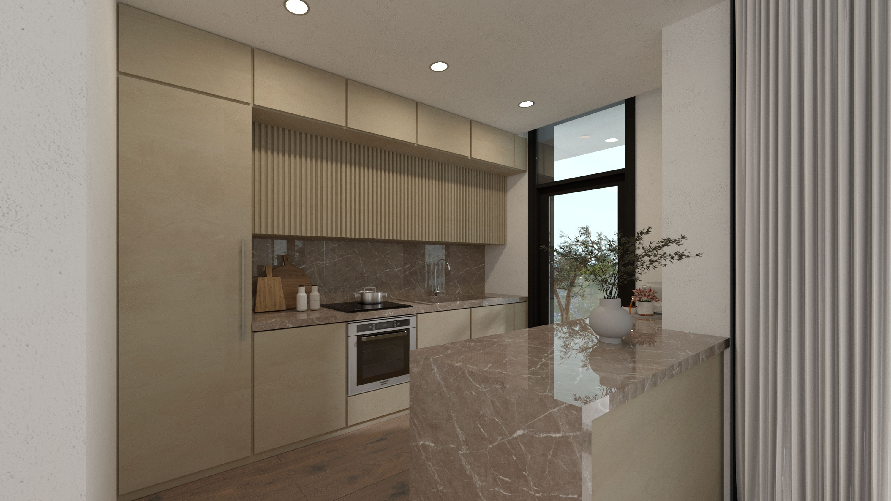 Nestled on a semi-island plot, in a calm, residential area, your apartment offers splendid, unobstructed views of fields and villas on three sides. Miragaia 1 enjoys a modern design touch. Its sleek tricolor exterior blends harmoniously with bespoke interior finishes.